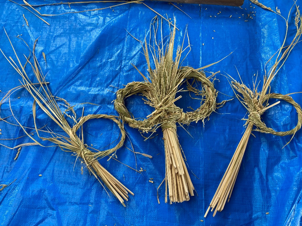 お昼から「しめ縄体験」を私も体験させて頂きました!丁寧に教えて頂いたのですが、私の不器用さが出ましたねー笑