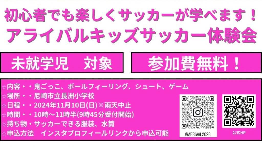 【アライバルキッズサッカー無料体験会 申込受付中!】